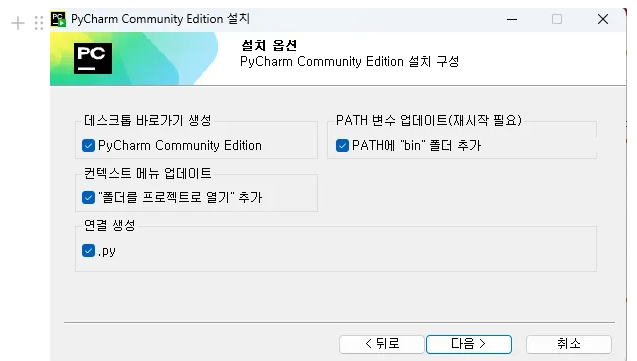 설치파일을 실행하고 아래와 같이 설치옵션을 설정한다.
